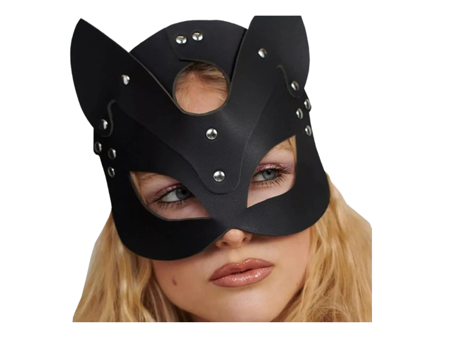 Máscara de gato de cuero para mujer, máscara de gato de media cara, accesorio